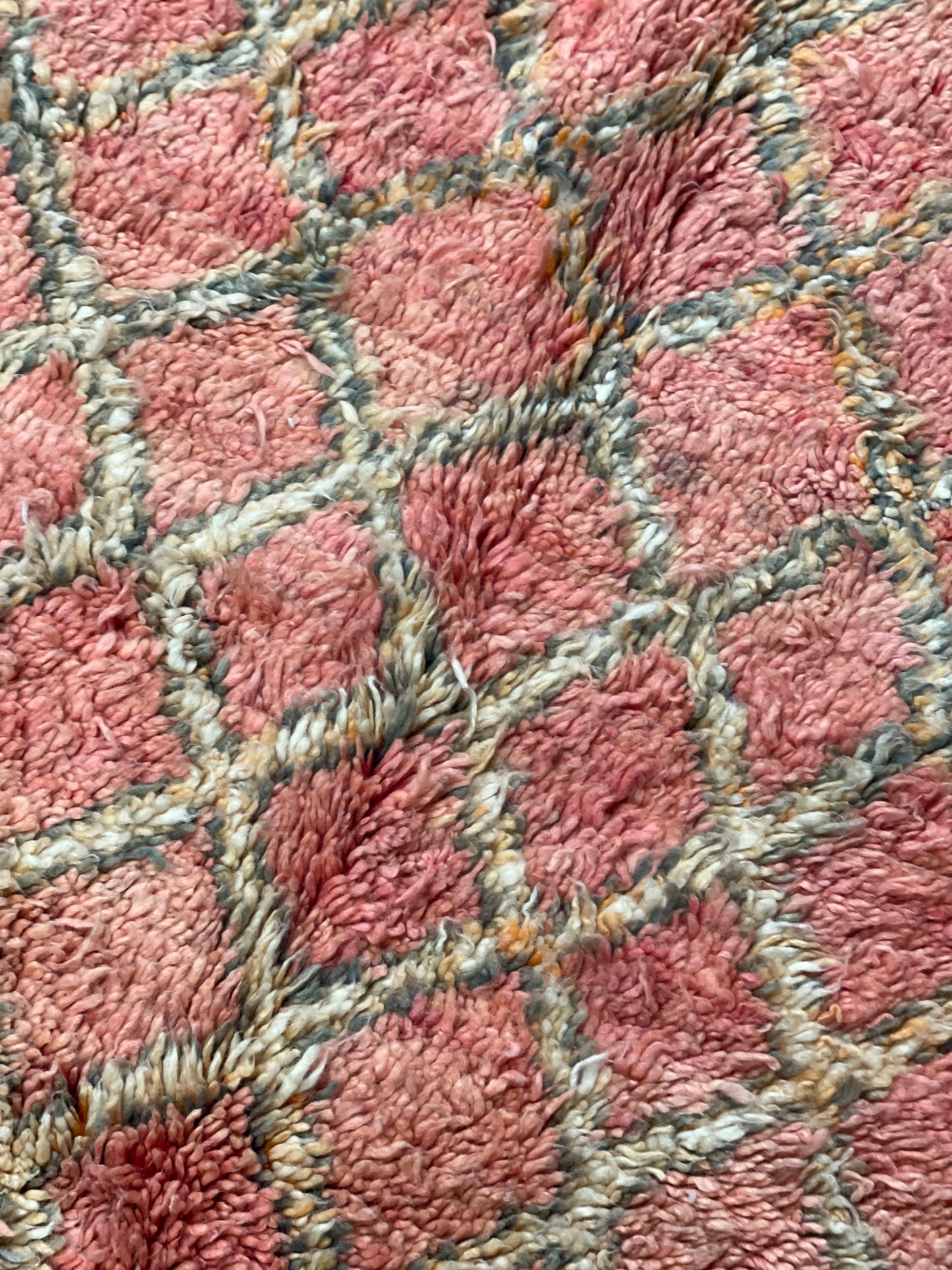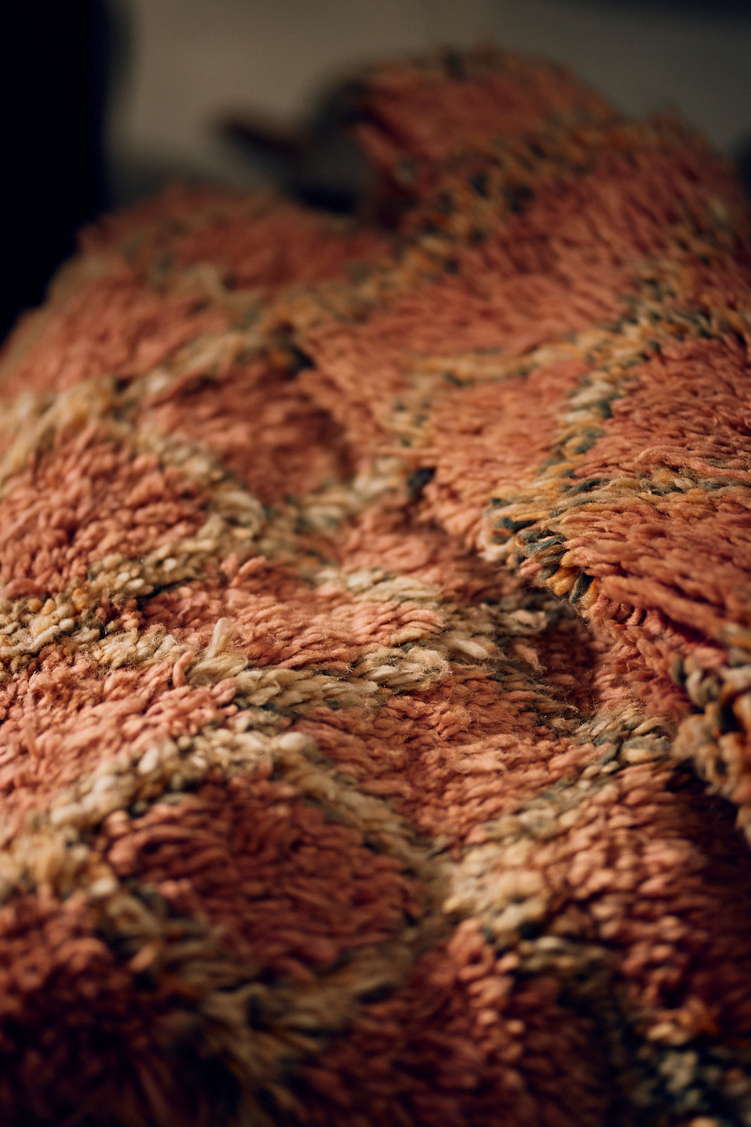 Marokkansk håndvævet tæppe. Tæpperne bliver håndvævet oppe i Atlas bjergene af bosiddende kvinder. Dette er en kultur tradition og har været sådan i mange generationer.