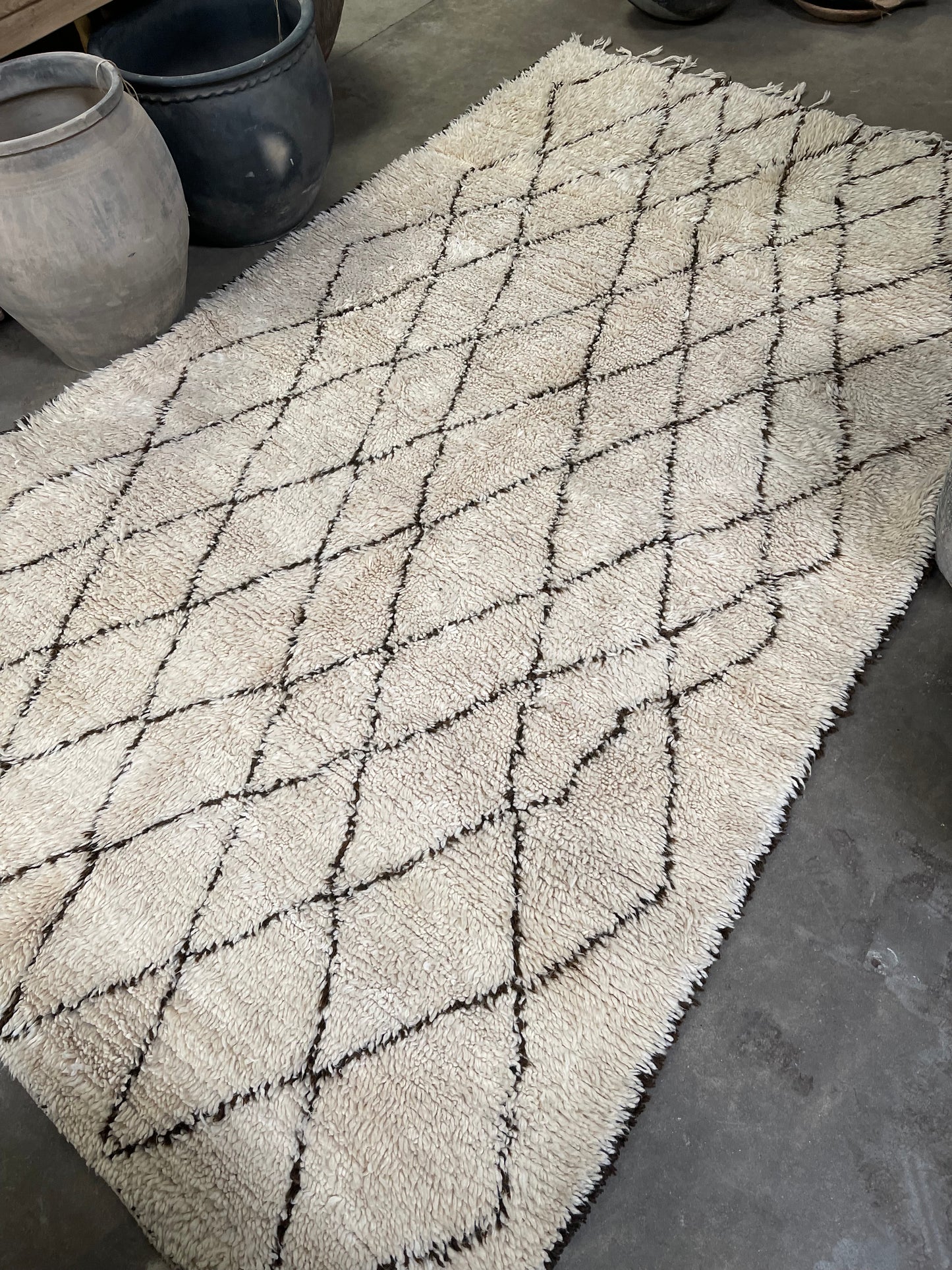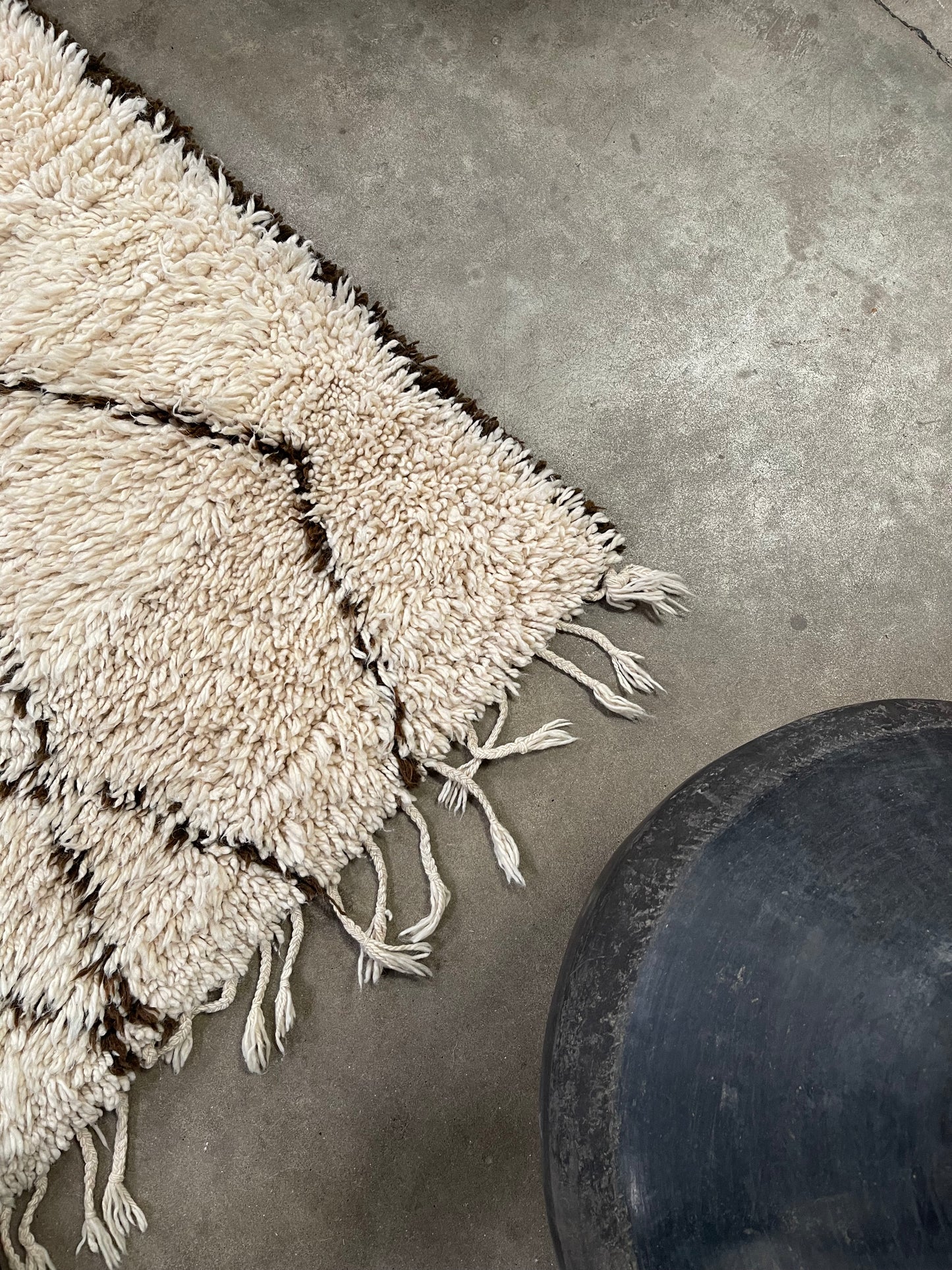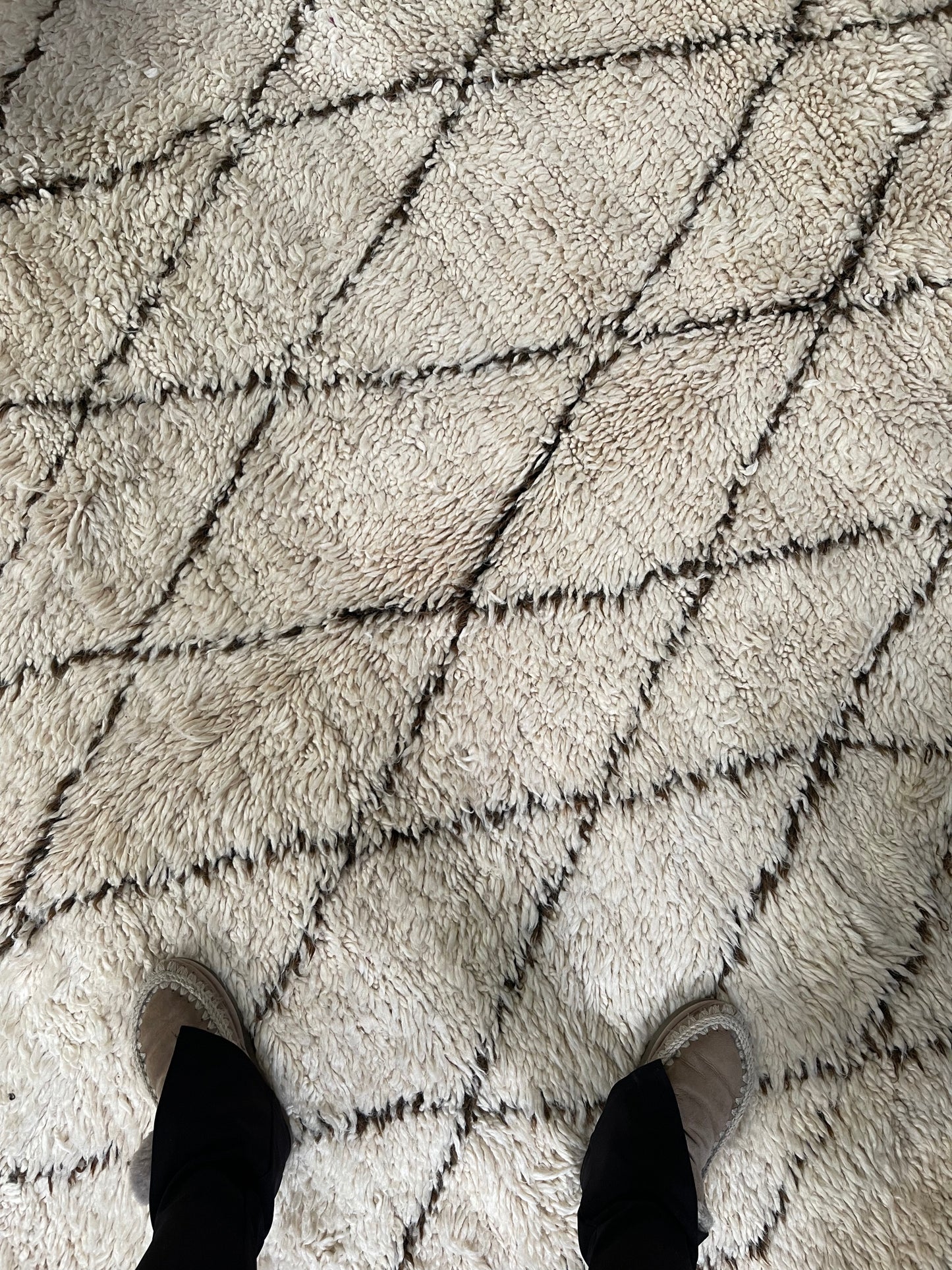 Marokkansk håndvævet tæppe. Tæpperne bliver håndvævet oppe i Atlas bjergene af bosiddende kvinder. Dette er en kultur tradition og har været sådan i mange generationer.